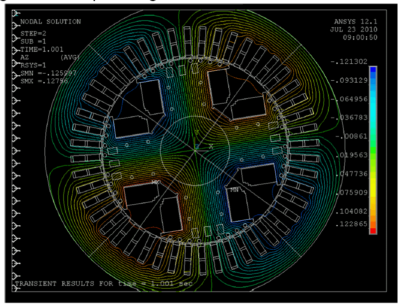 Magnetic flux paths (i.e. flow of magnetism) for a generator operating at 0.8 PF
